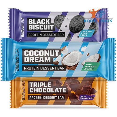Biotechusa protein dessert bar is a gluten- and palm oil free protein bar with low sugar content. Tarne
