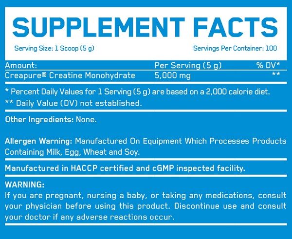 CREATINE 5000 Fueled with Creapure® ( ) is 100% pure product, with pharmaceutical grade micronized creatine monohydrate.