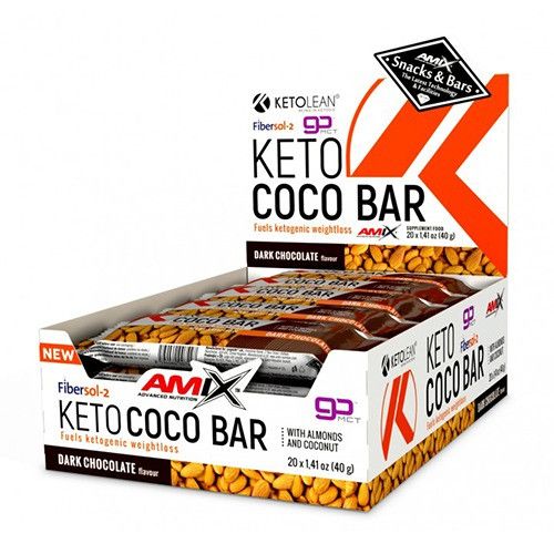 AMIX KetoLean Keto Coco Bar - magusainete ja maitsega toidulisand kõrgendatud rasvasisaldusega, madala suhkrusisaldusega, kõrge kiudainesisaldusega, rikkaliku valguallika, tõelise kookospähkli ja pähklitükkidega.