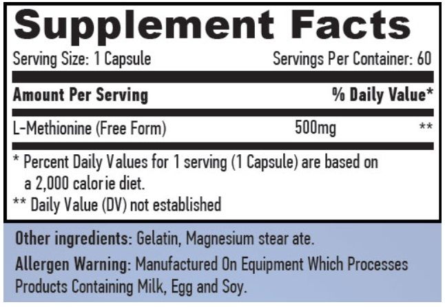 HAYA LABS L-Methionine contains essential amino acid L-methionine, which protects the liver from damage, improves brain blood circulation and has a beneficial effect on the heart and kidneys. L-methionine has a strong anti sclerosis action, reduces the risk of cancer and helps the digestive system. Also, this essential amino acid is a powerful antioxidant, neutralizes the harmful effects of free radicals and helps detoxifing the body.